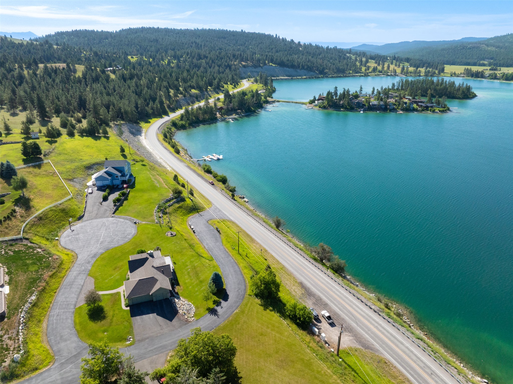Discover your private sanctuary at this exquisitely designed custom home with incredible views over Foys Lake, with private lake access which consists of a large dock and boat slips! Large windows capture stunning panoramic lake views and vibrant westerly sunsets, creating a postcard-perfect setting. Minutes from Hospital, Schools, Hutton Ranch Plaza and Downtown Kalispell. The state-of-the-art gourmet kitchen anchors a flexible floor plan, highlighted by a large main-level master suite and two additional large bedrooms in the fully finished walk-out lower level, each offering incredible lake vistas. Recently installed HVAC/Heat Pump, water heaters, updated appliances, to new carpet and paint, the list goes on! Experience the pinnacle of lakeside living all just minutes from downtown Kalispell.